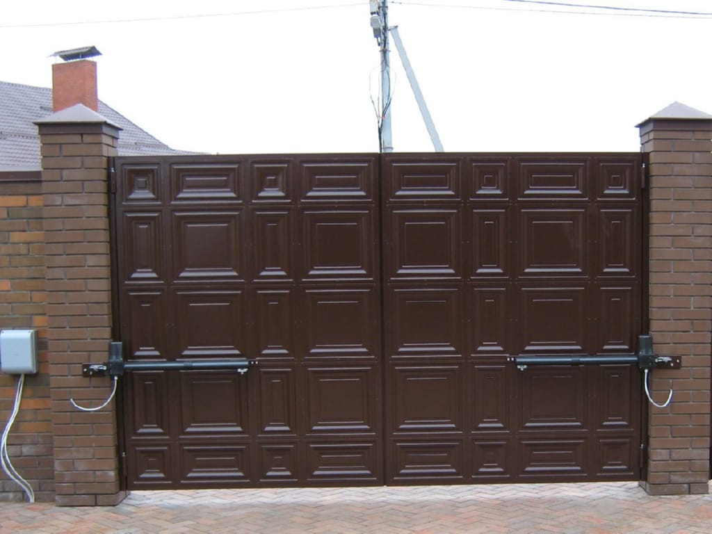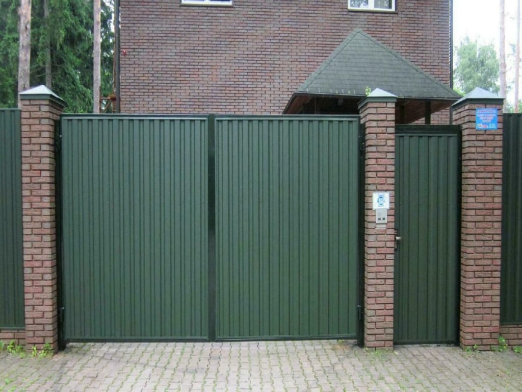 Ворота распашные с дистанционным управлением из профнастила с калиткой